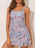 Set tankini vintage din două piese: Fustă tankini, top tankini cu slipul de bikini, maiou de baie cu volane, set tankini cu decolteu pătrat și fustă cu crăpături laterale, costum de baie cu spate deschis, costum de baie push-up cu căptușeală moale detașabilă care oferă susținere excelentă și vă pune în valoare silueta.
