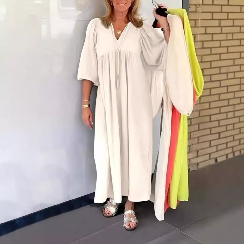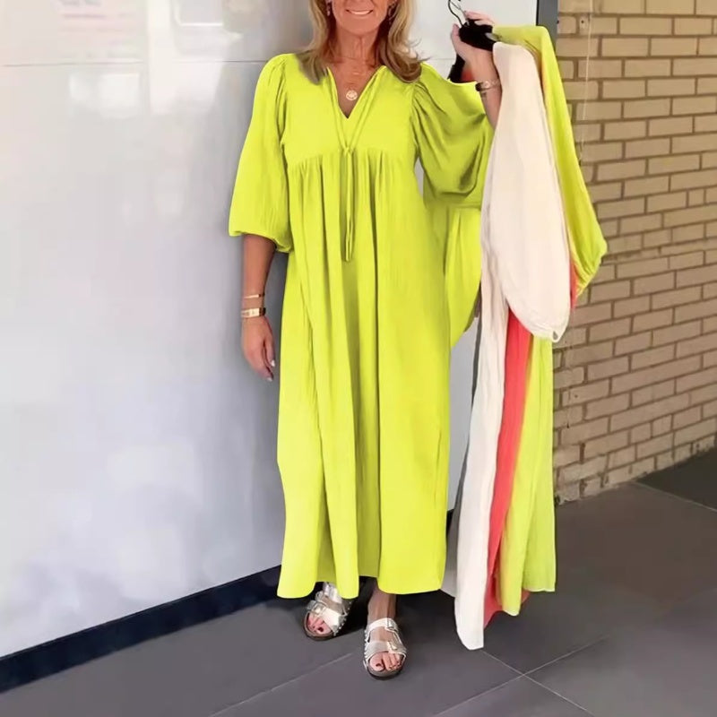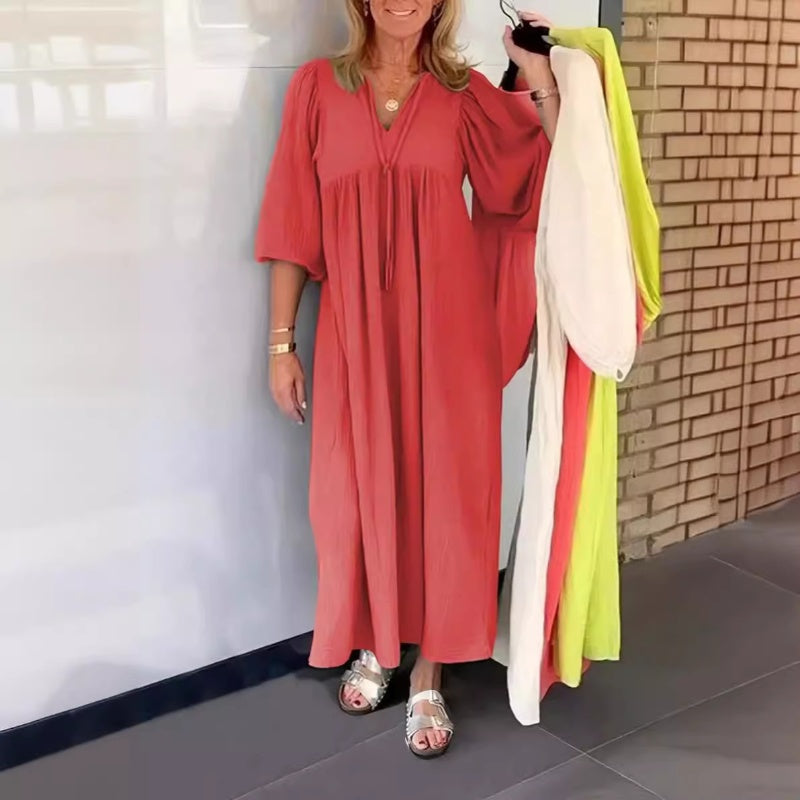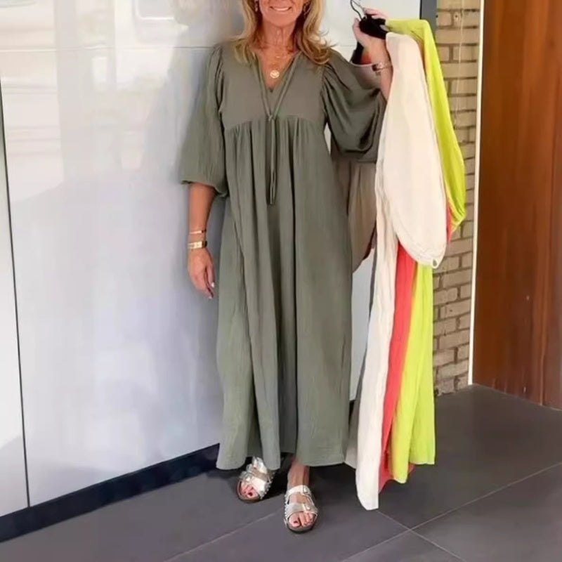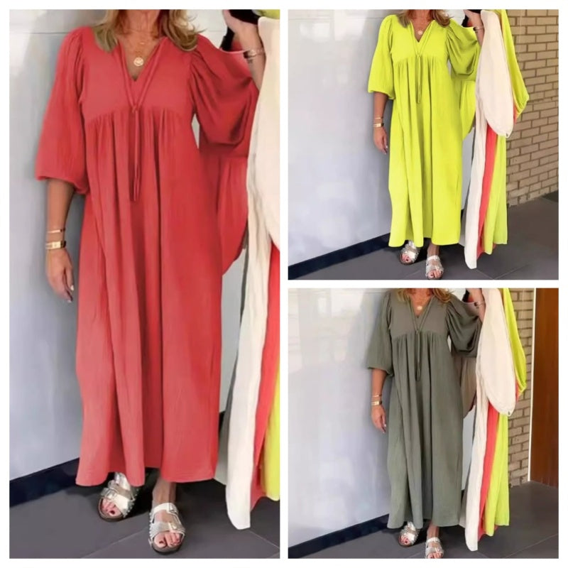Pachetul include: 1: Pachetul include: 1× Rochie maxi cu gât v cu bule și mâneci 3/4.