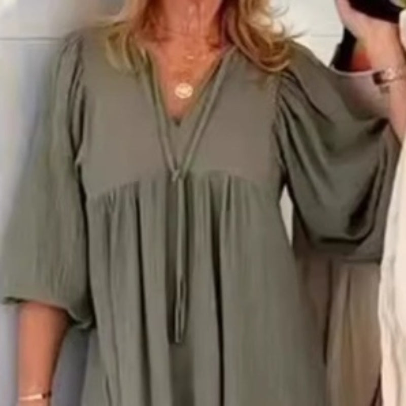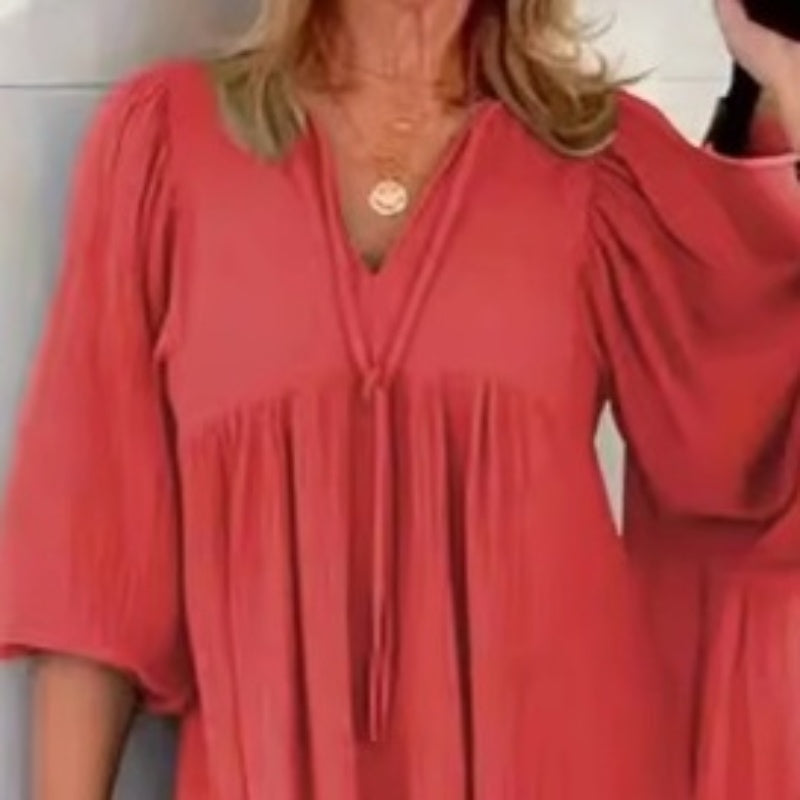 DETALII ARTIFICIALE - Un decolteu măgulitor în V cu o cravată decorativă adaugă romantism, în timp ce mânecile bufante cu bule curg în lungime 3/4 pentru farmec vintage. Fiecare cusătură șoptește eleganță fără efort.