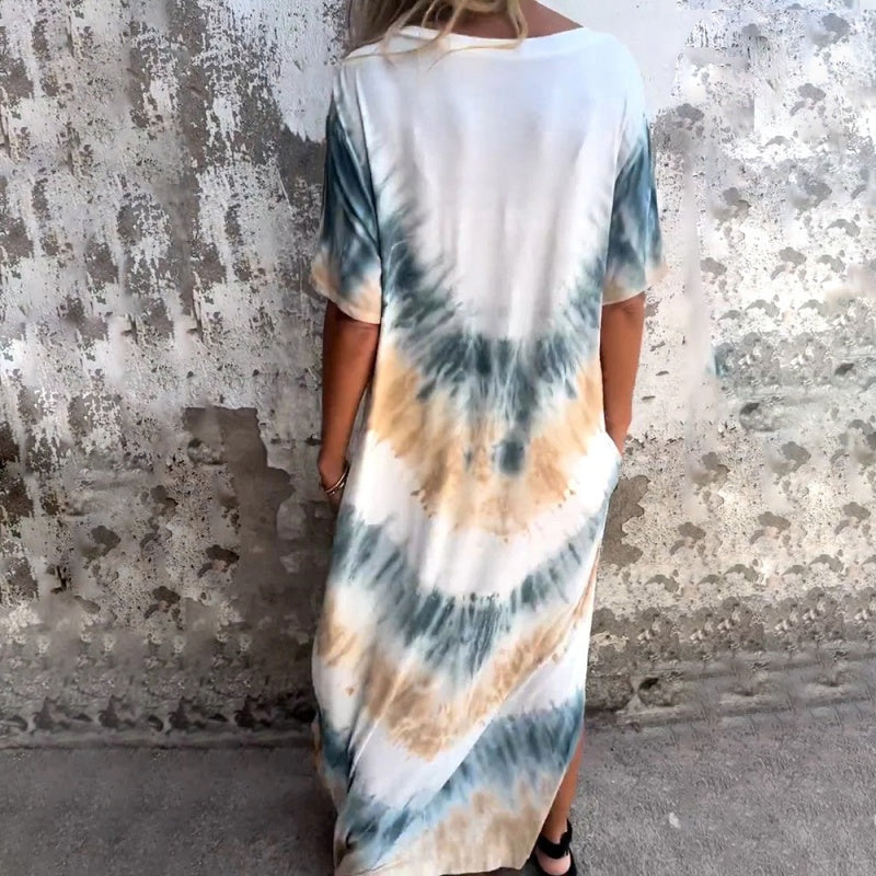 Pășiți în vară cu stil și confort în rochia noastră lungă lejeră cu imprimeu în V. Fabricată din țesătură ușoară și respirabilă, această rochie este concepută pentru a vă menține răcoroasă și relaxată în timpul lunilor fierbinți de vară. Ținuta lejeră și relaxată oferă libertate de mișcare și o siluetă măgulitoare pentru toate tipurile de corp.