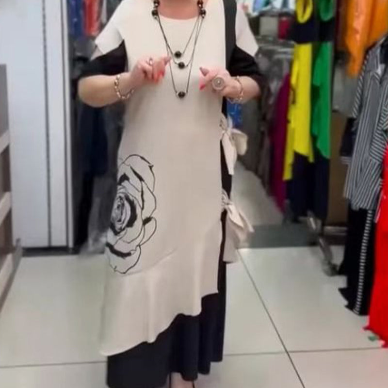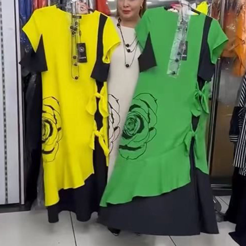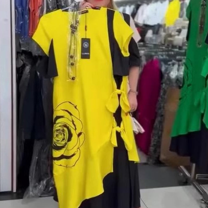 DETALII ELEGANTE - Cu un decor fermecător cu cravată laterală și un decolteu rotund, această rochie conferă eleganță subtilă. Tivul neregulat cu volane și designul izbitor color blocking creează o declarație de modă îndrăzneață care întoarce privirile fără efort.