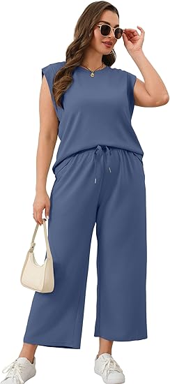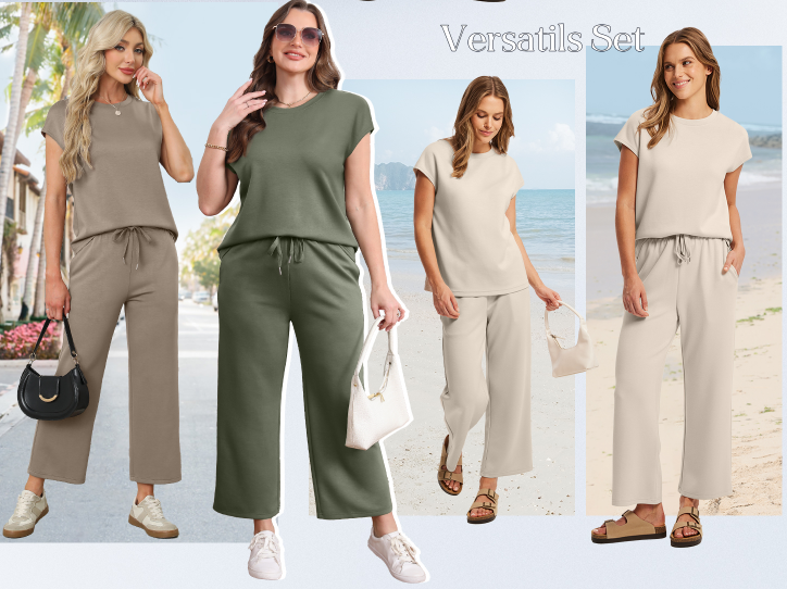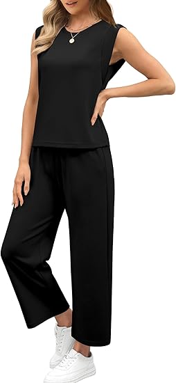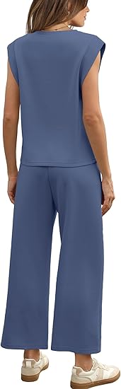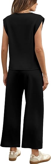 💗✨Cu un top relaxat fără mâneci și pantaloni cu cordon, are acea vibrație fără efort pe care o iubim. 💕☀️Poartă-l cu adidași sau cu tobogane și ești gata de plecare!
