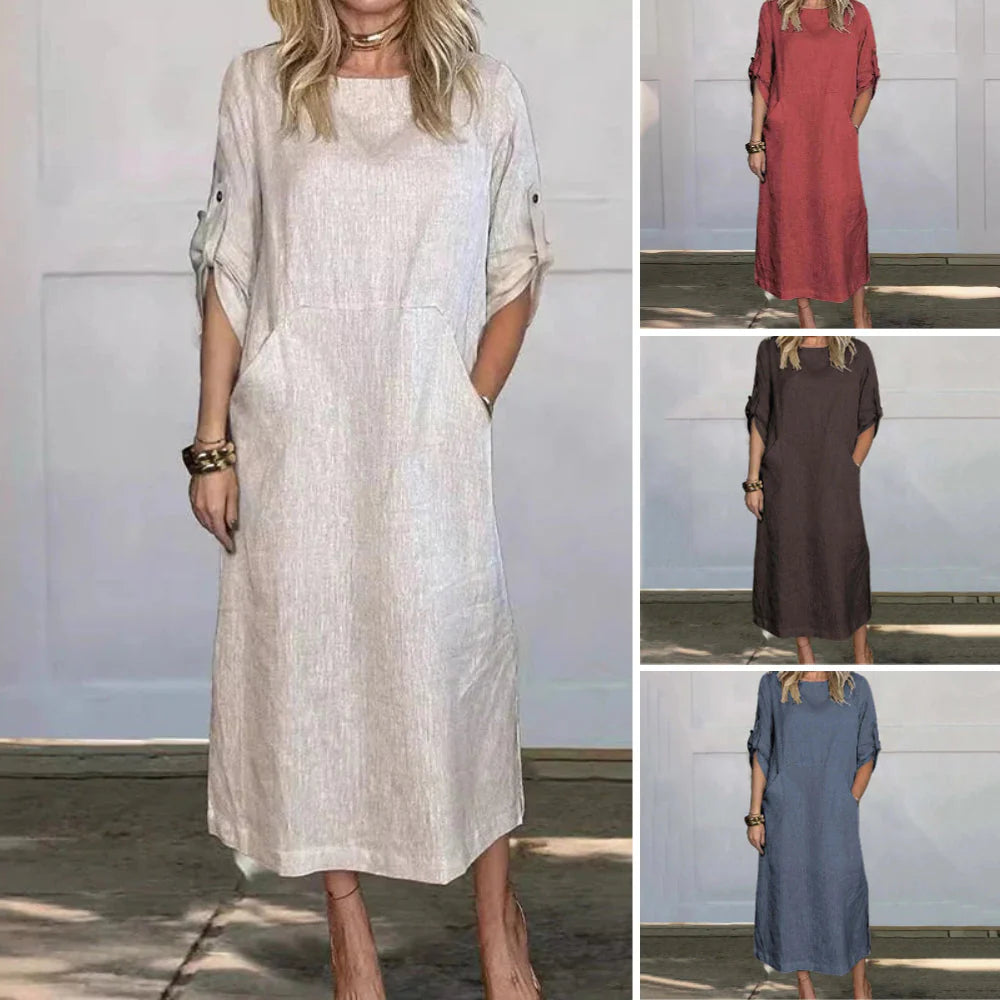 1 * Rochii lejere pentru femei din bumbac și in, în culori solide
