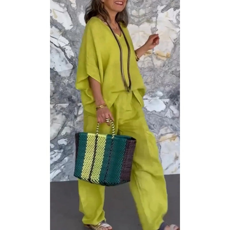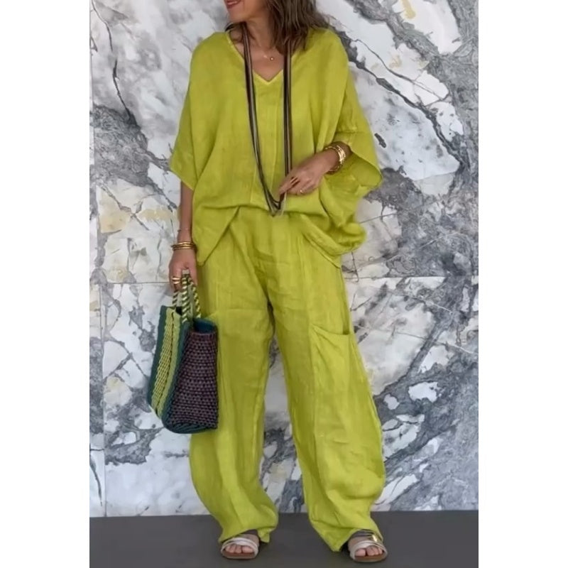 Pachetul include:1 * Set din două piese din in și bumbac pentru femei