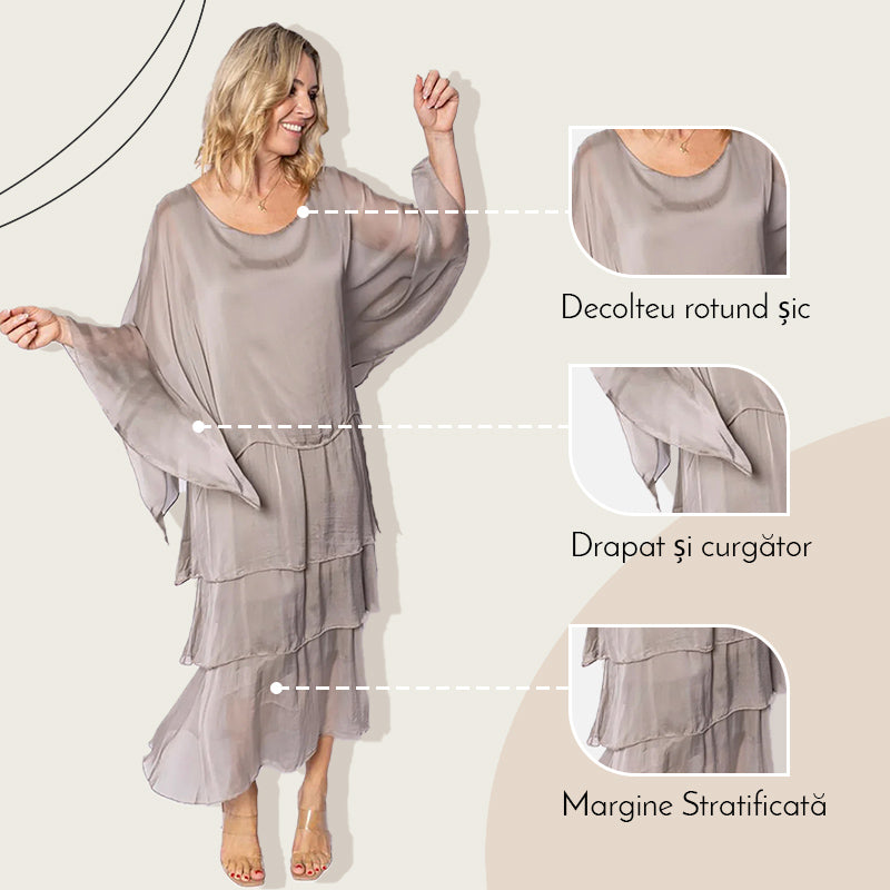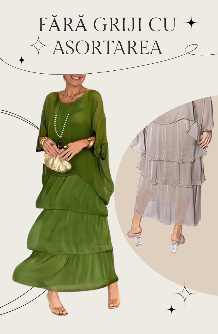 🔥 Rochie plisată elegantă și elegantă cu un decolteu rotund