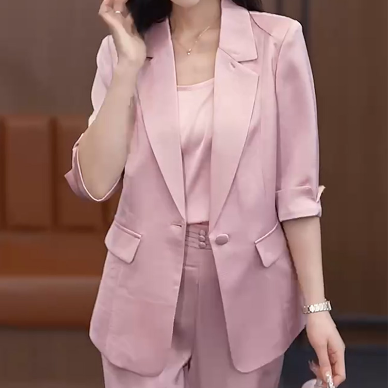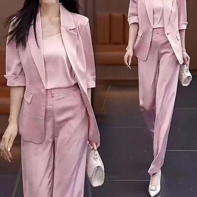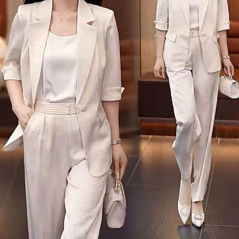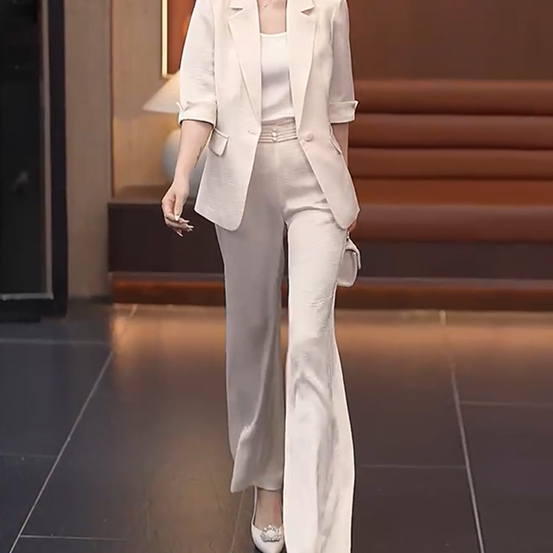 VERSATILITATE ÎN 3 PIESE – Cu un blazer cu mâneci scurte, un top interior asortat și pantaloni cu talie înaltă, acest set se adaptează perfect la diferite medii. Poartă ansamblul complet pentru o prezență elegantă sau combină piesele pentru ținute casual, de afaceri sau de seară. Fiecare combinație oferă eleganță fără efort, fără stresul stilizării.