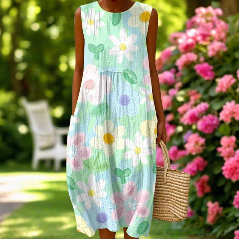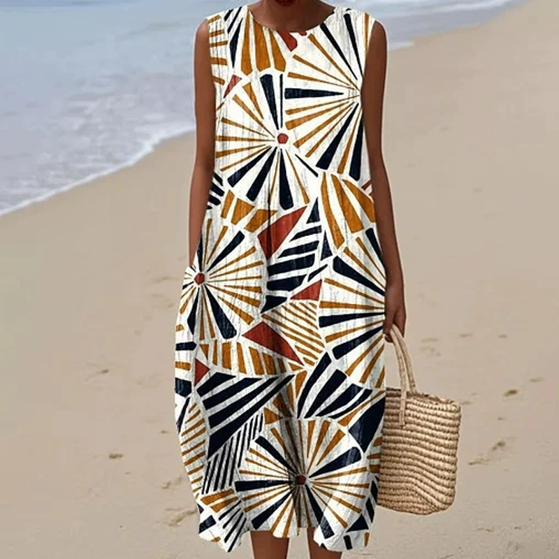 TĂIERE FĂRĂ ȘOLDURI: Rochia este proiectată fără mâneci, asigurând respirabilitate maximă și libertate de mișcare. Este ideală pentru zilele călduroase sau climatele tropicale, deoarece vă menține răcoroasă, menținând în același timp un aspect elegant și stilat.