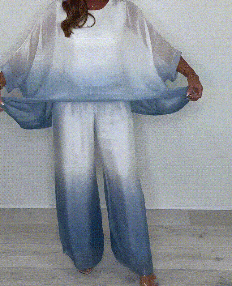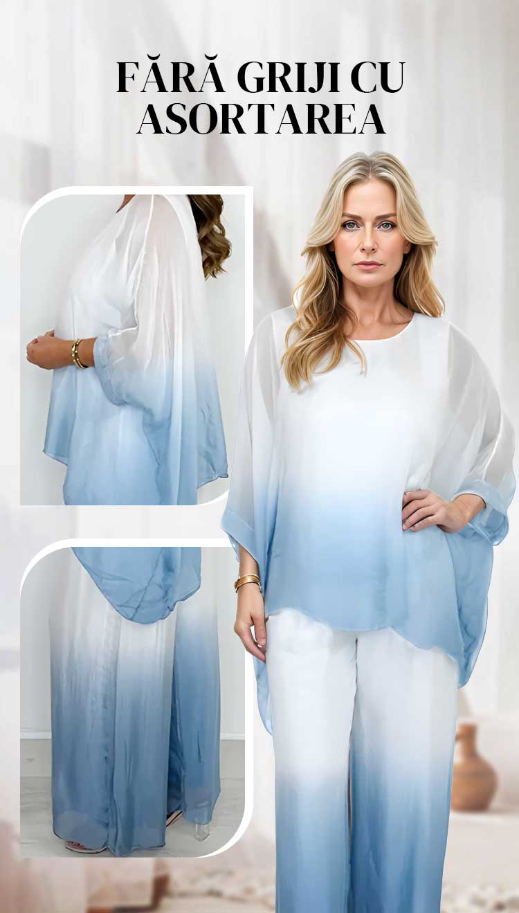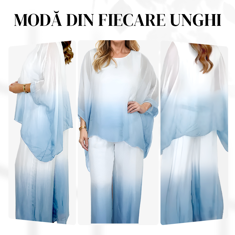 Set de 2 piese cu bluză cu mâneci lungi și gât rotund și pantaloni