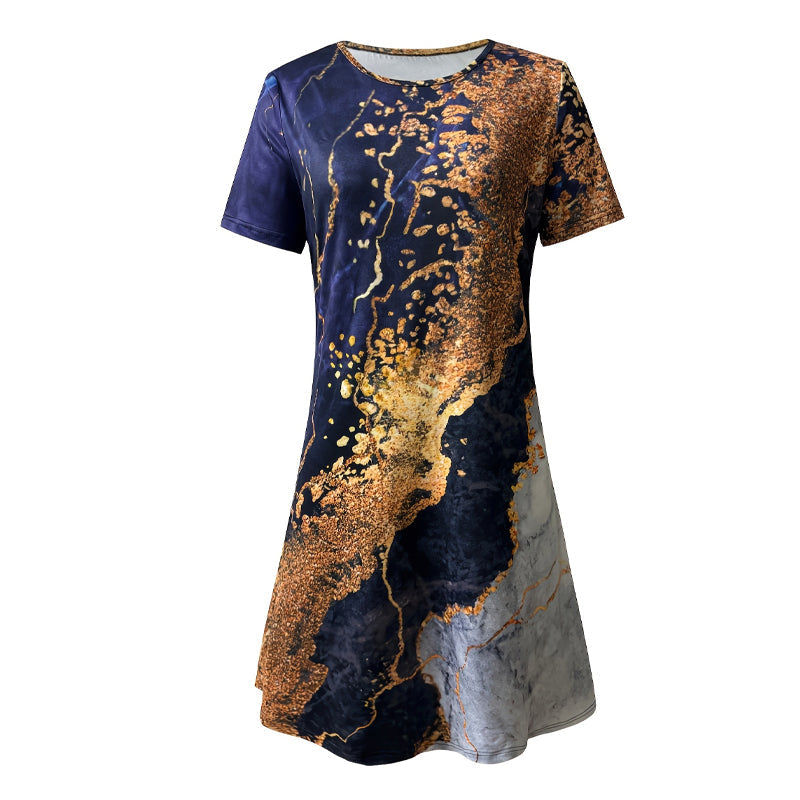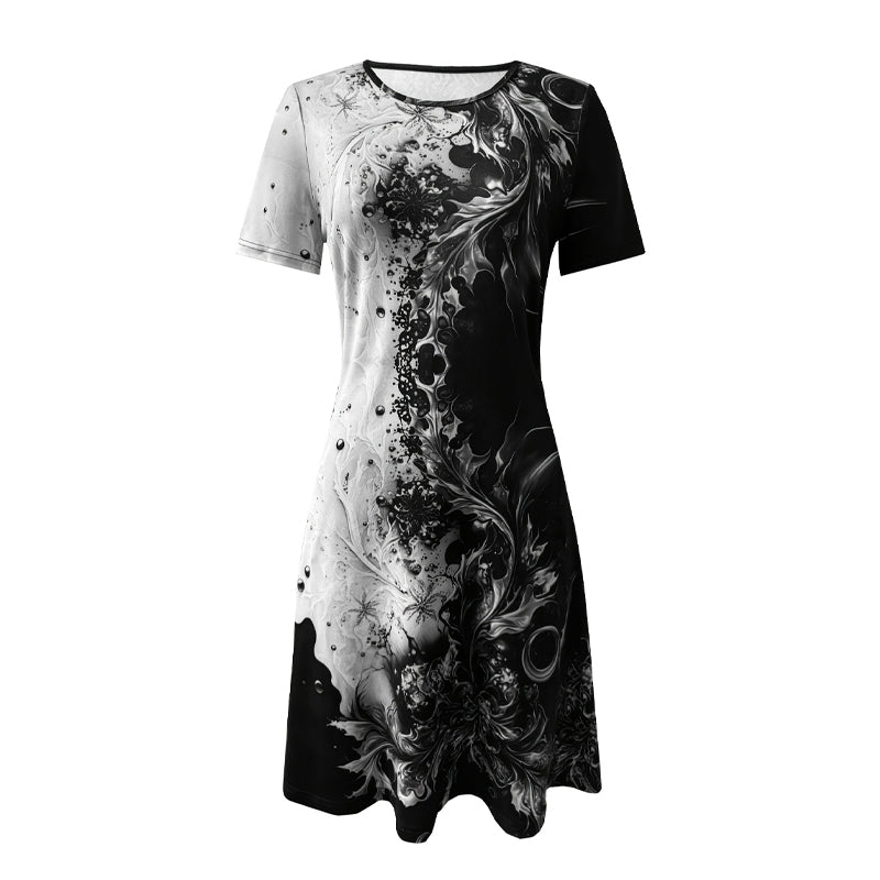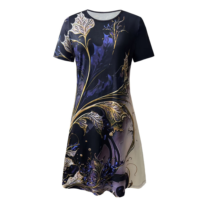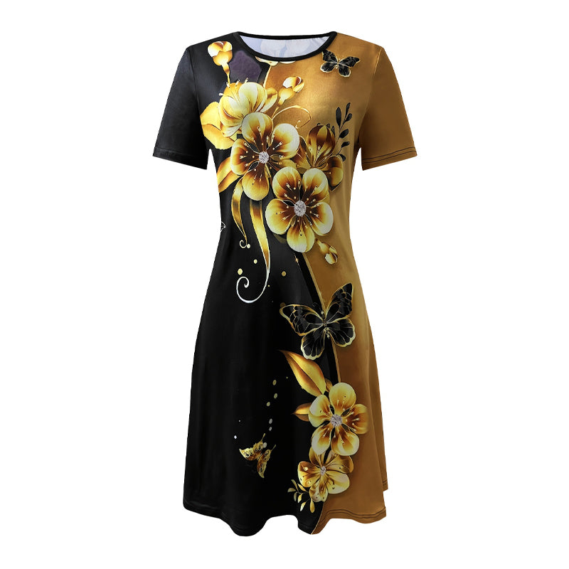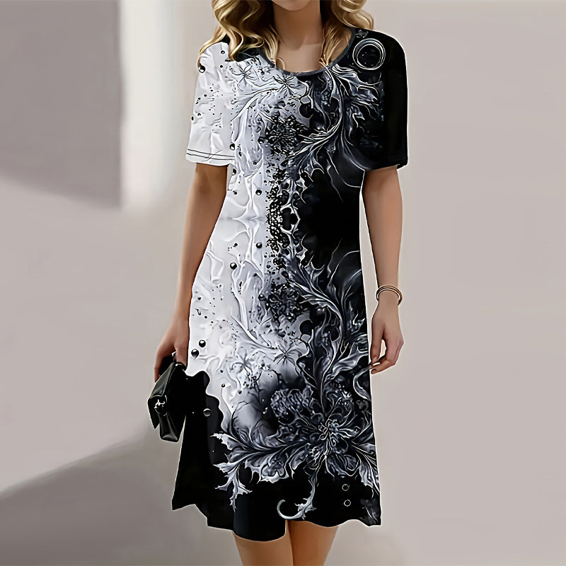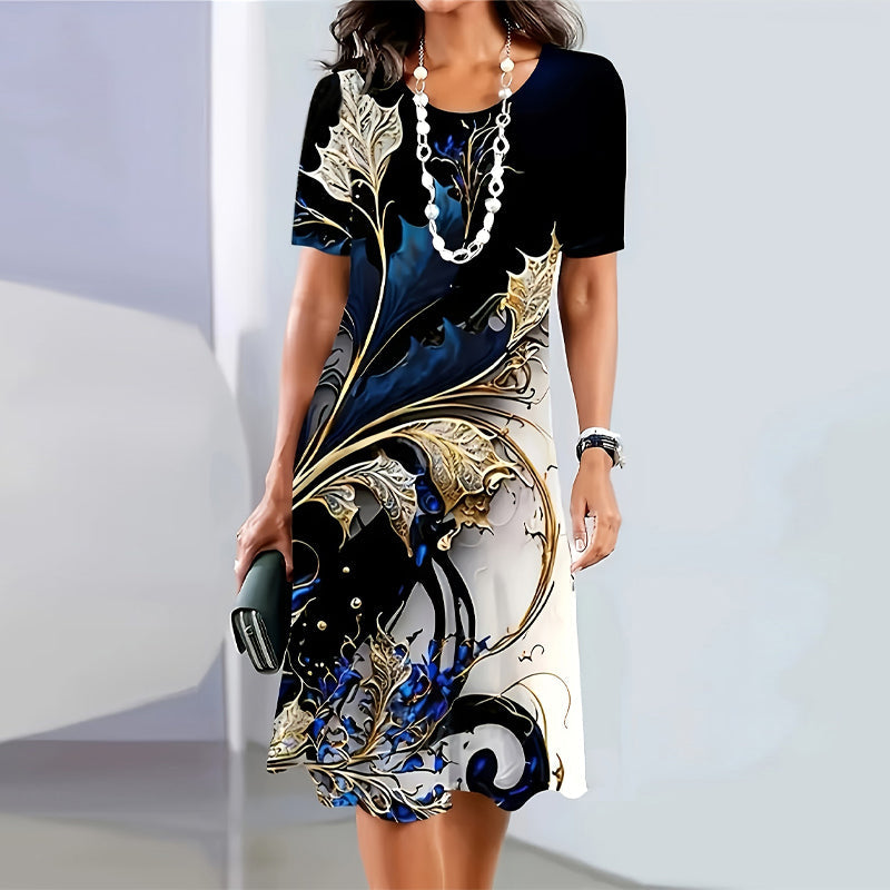 Pachetul include: 1 * Rochii elegante cu gât rotund imprimate