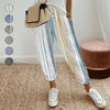 1 * Pantaloni cu dungi din bumbac din in pentru femei