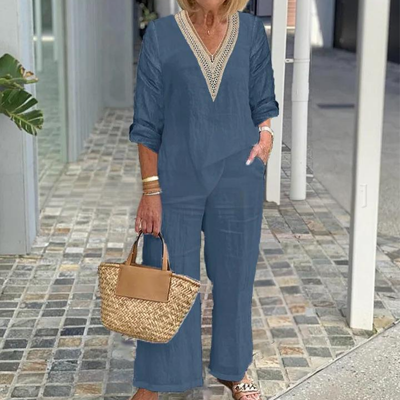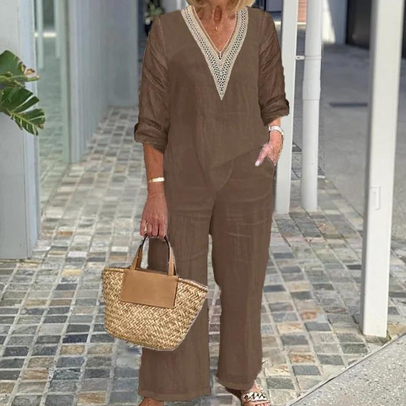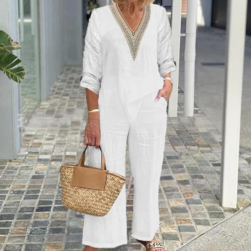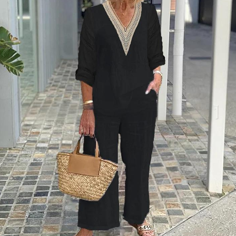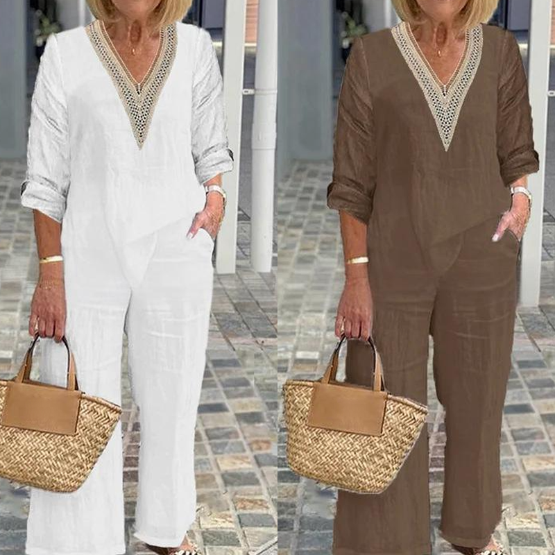 Conținutul pachetului: 1 * Top cu decolteu în V pentru femei și pantaloni cu picioare largi