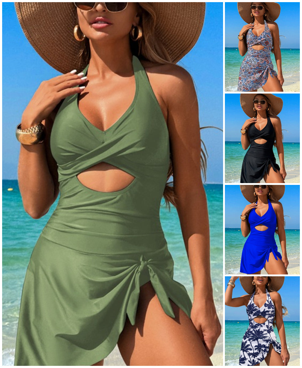 Decolteul adânc în V și talia decupată la modă se combină pentru un aspect îndrăzneț și sofisticat. Nu este doar un costum de baie, este o piesă statement care face un impact la soare.