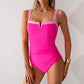 ȚESĂTURĂ CONFORTABILĂ ȘI ELASTICĂ: Confecționat dintr-o țesătură moale și elastică, acest costum de baie oferă flexibilitate și confort maxim. Materialul se mulează pe corp, asigurând o potrivire confortabilă și relaxată pe tot parcursul zilei.