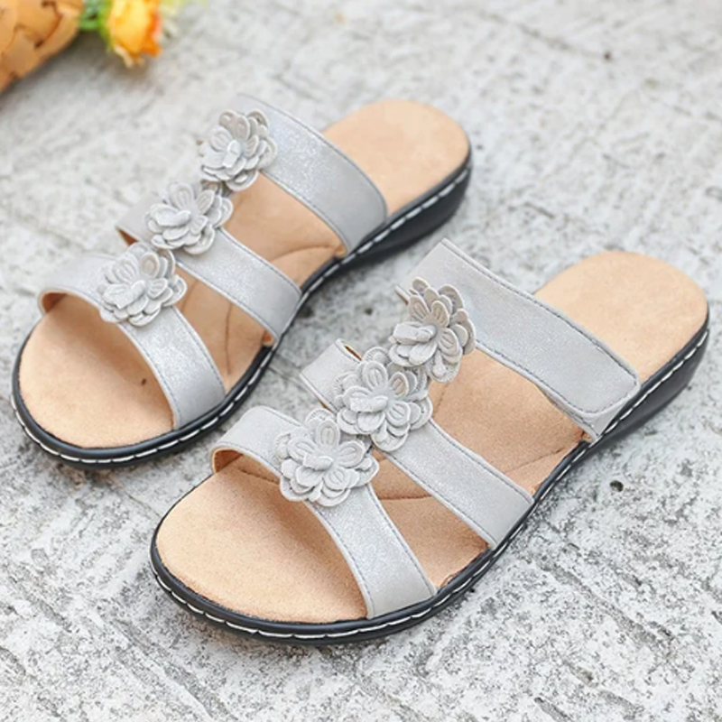 Pachetul include: 1 paragraf * Sandale pentru femei cu decor floral și slip-on.