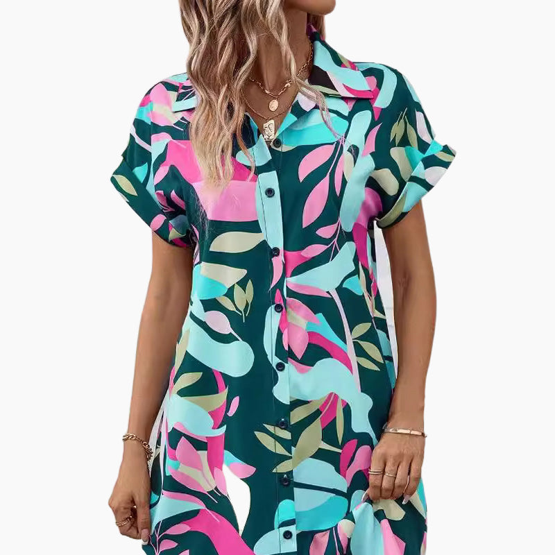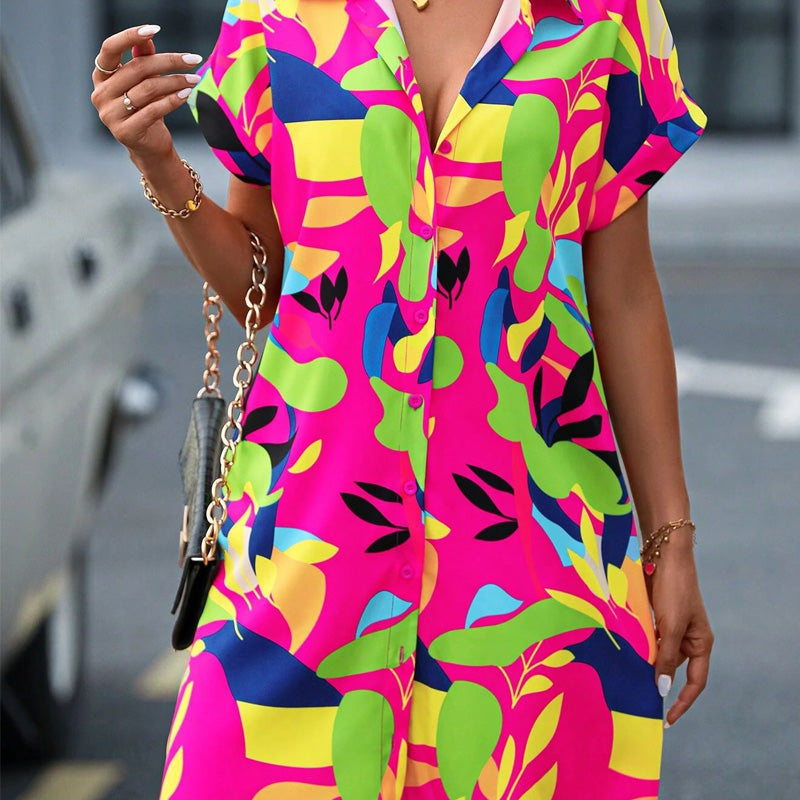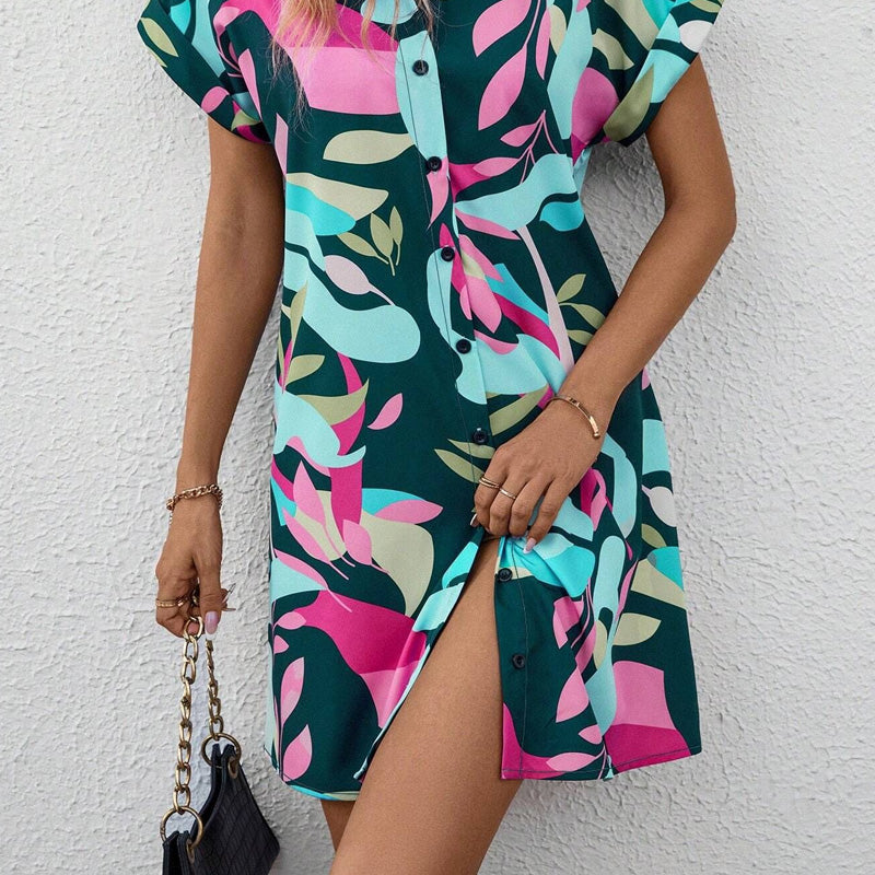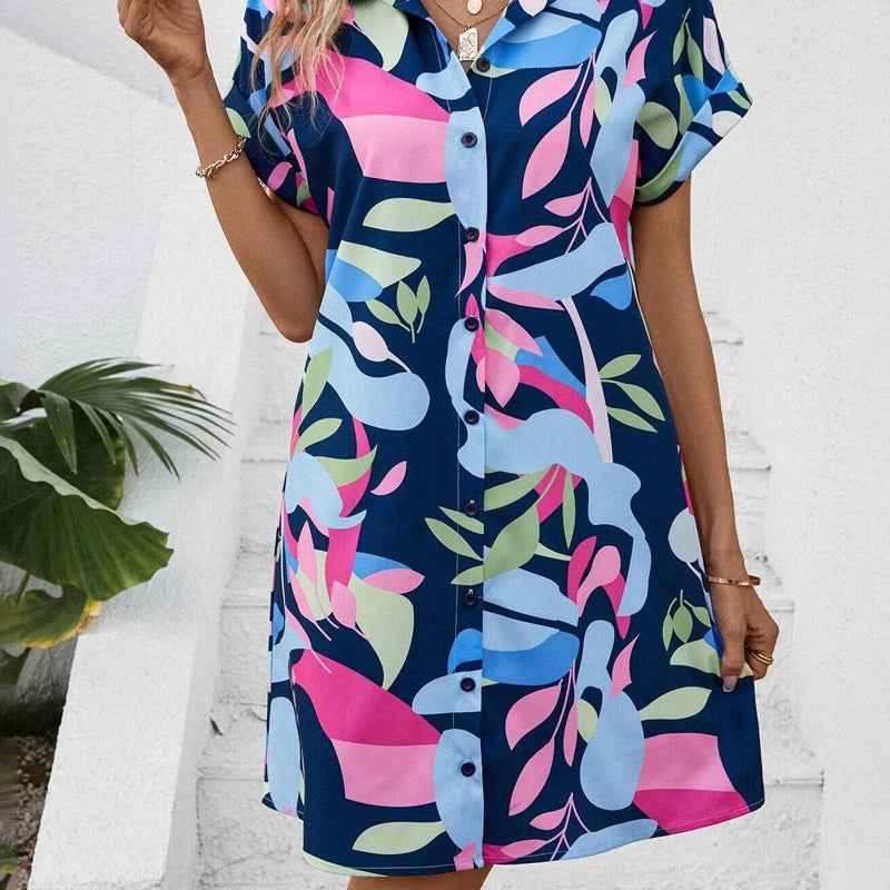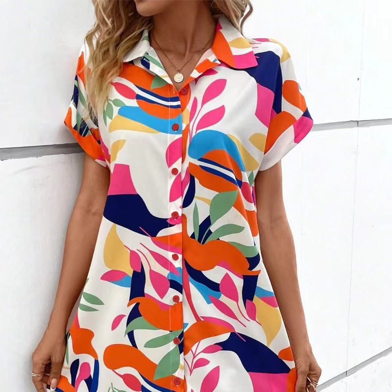 Pachetul include: 1 * Rochie de cămașă cu mânecă scurtă cu imprimare florală de modă pentru femei