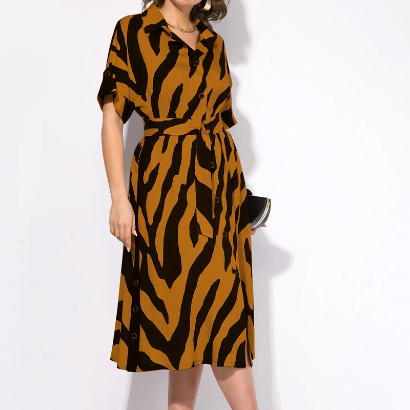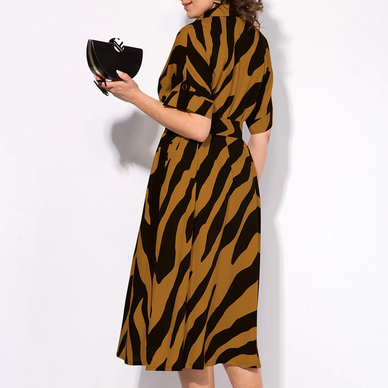 1 × Rochie în linie pentru femei cu imprimare în dungi, cu decolteu în V