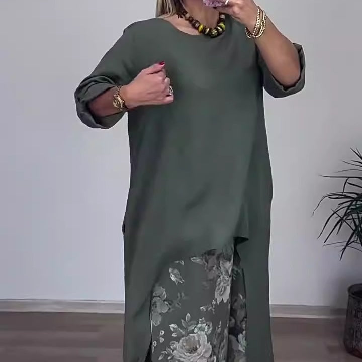 Pachetul include: 1 * Top asimetric pentru femei și pantaloni imprimate 2-Piece Set