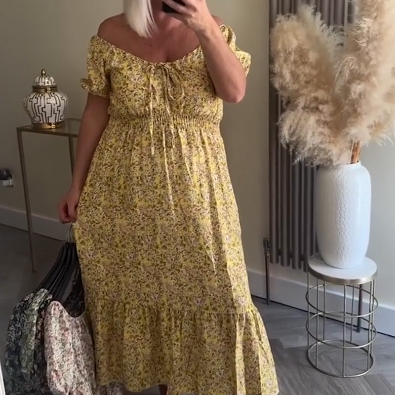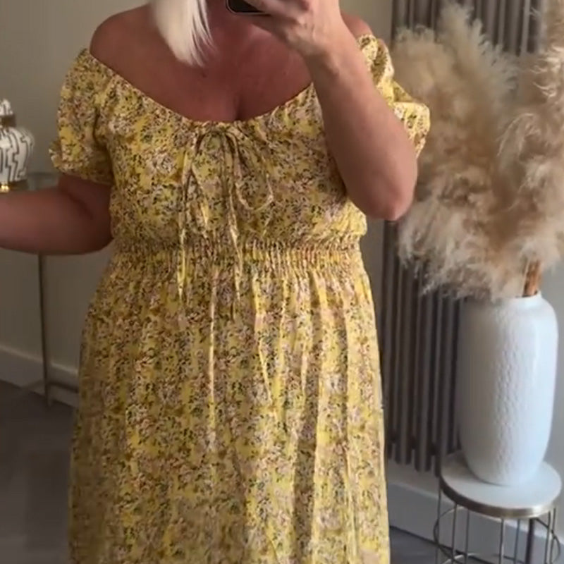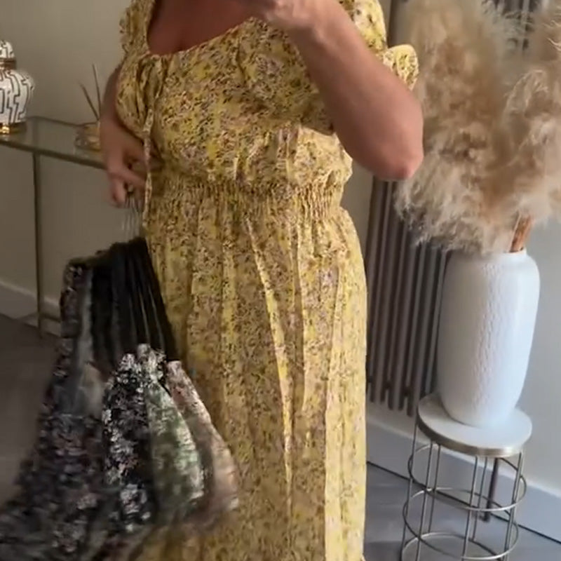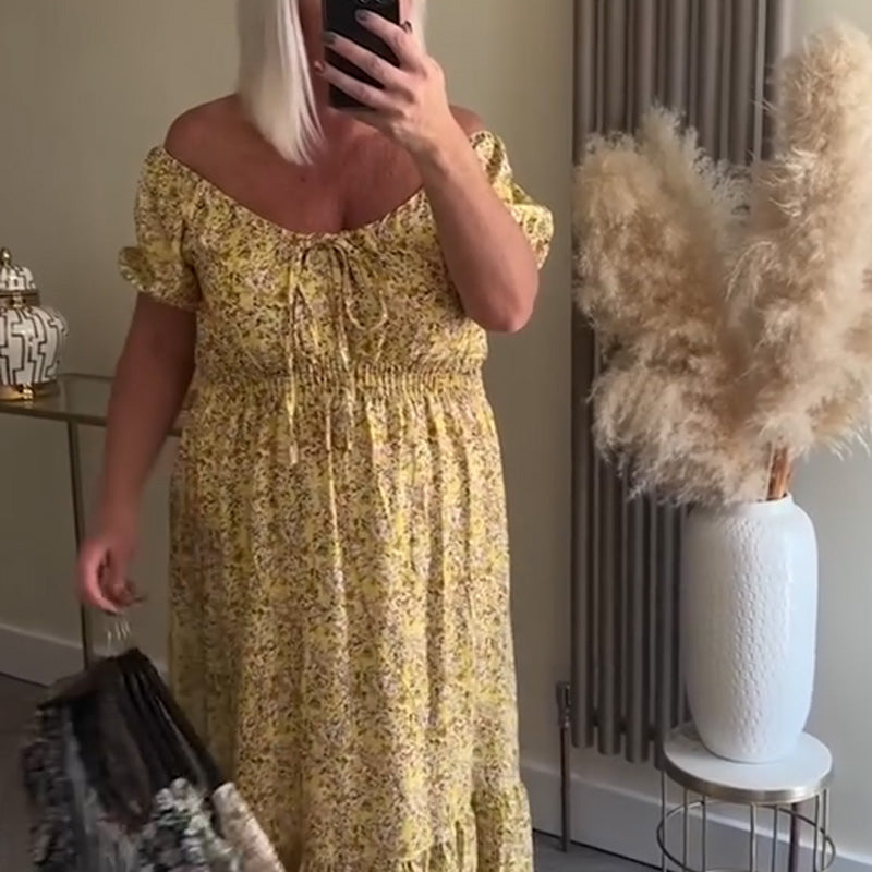 DETALII ELEGANTE: Descoperiți măiestria rafinată în fiecare detaliu, de la modelul floral delicat care împodobește întreaga rochie până la nodurile fermecătoare de la decolteu. Modelul floral din întreaga rochie îi conferă un farmec atemporal, în timp ce legăturile reglabile permit personalizarea. Aceste detalii încântătoare ridică rochia deasupra ținutelor casual obișnuite.