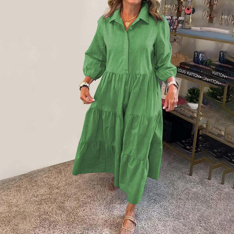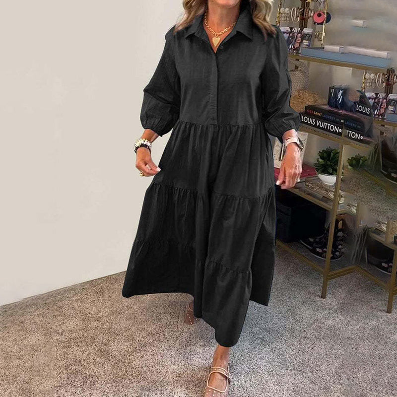Guler CLASIC - Gulerul cu tăietură curată adaugă un farmec atemporal și structurat la ținuta largă a rochiei, adăugând cantitatea potrivită de eleganță care este perfectă atât pentru ocazii casual, cât și semi-formale.