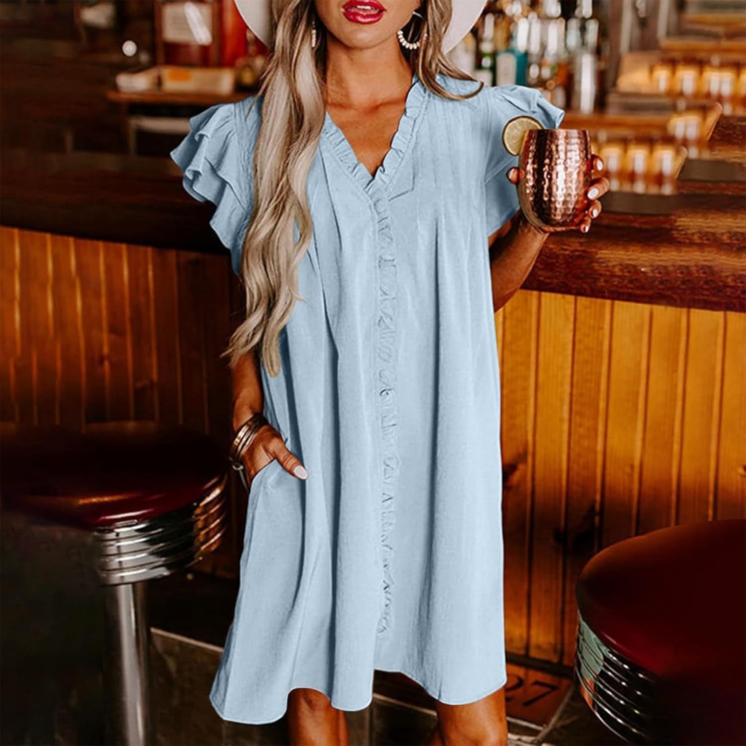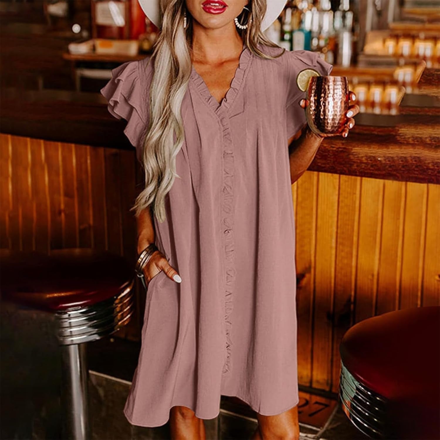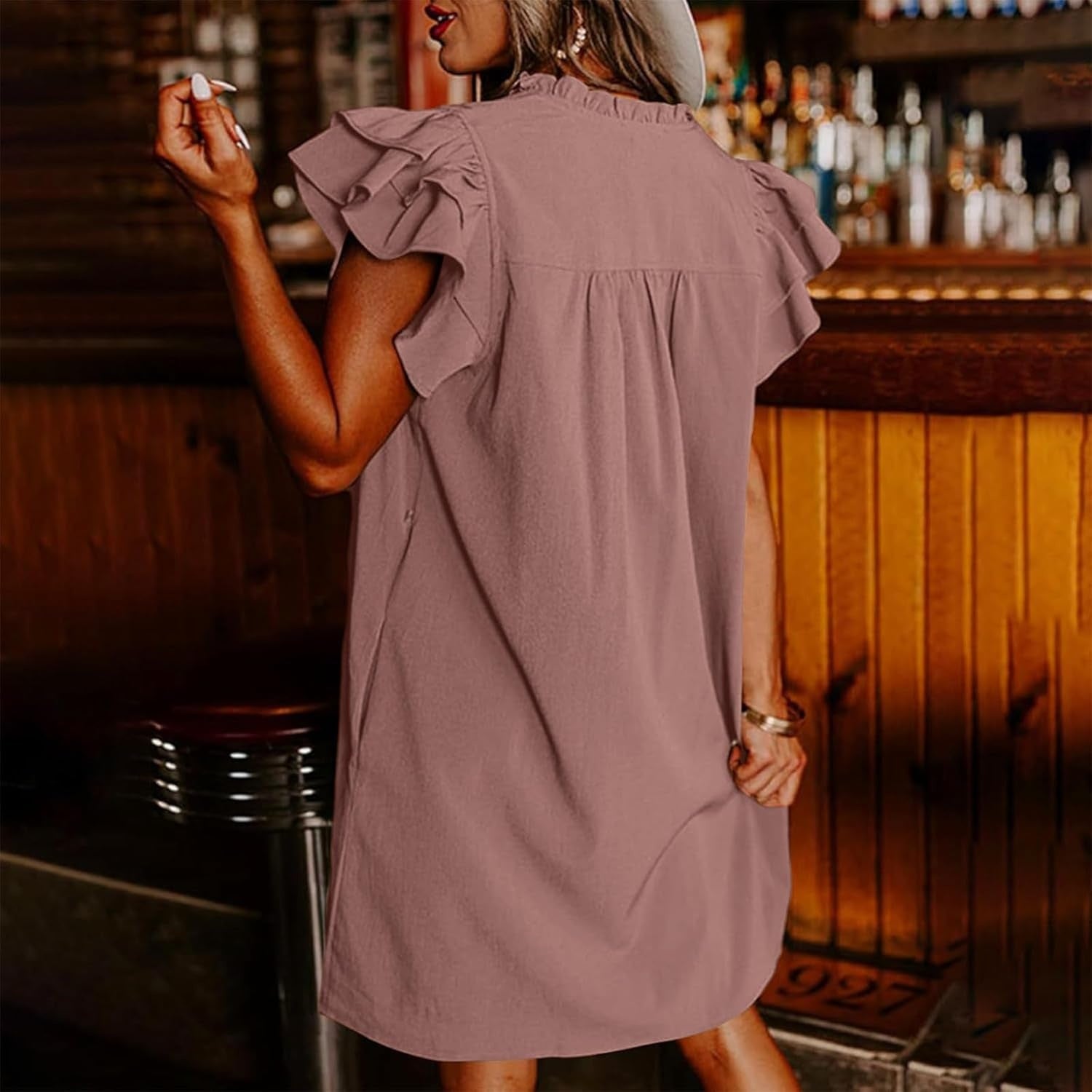 ACCENTE DELICATE DE VOLANE: Volanele subtile împodobesc această rochie cu farmec romantic, creând o mișcare atrăgătoare la fiecare pas, menținând în același timp o estetică elegantă fără efort pentru purtarea de la zi la noapte.