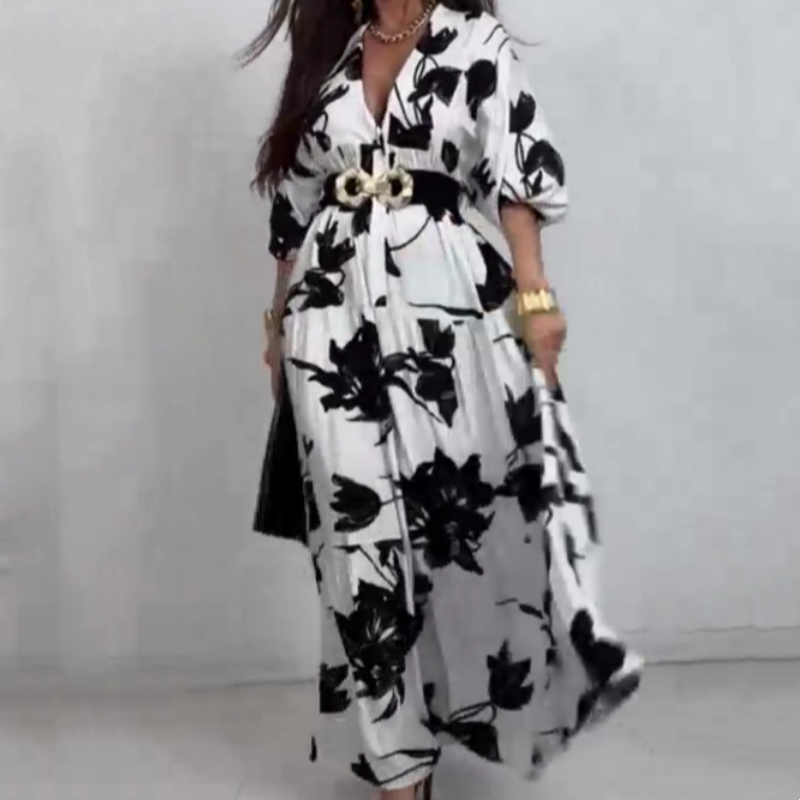 Pachetul include: 1: 1 * Rochie maxi elegantă imprimată cu gât V pentru femei