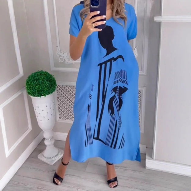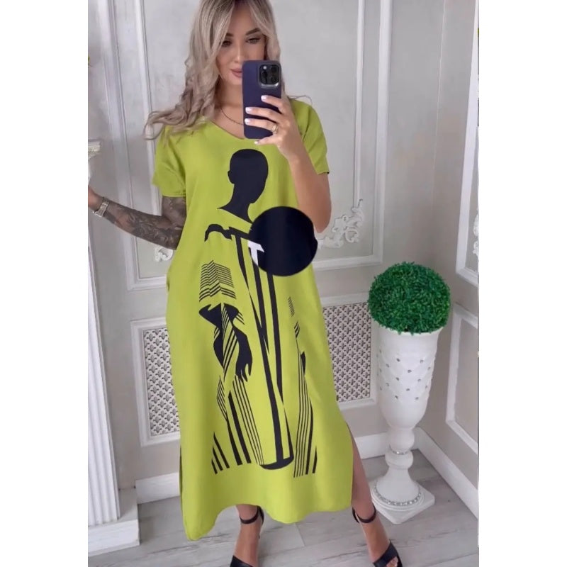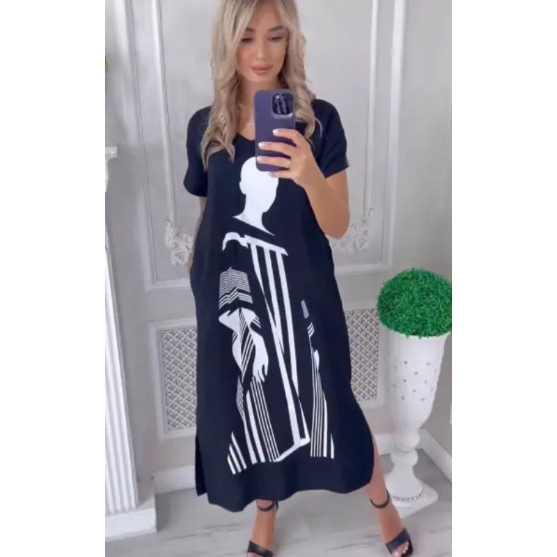Mâneci scurte - acoperire ușoară, respirabilă și confortabilă: Mânecile scurte acoperă brațele exact cum trebuie, permițând în același timp aerului să circule liber, făcând această rochie perfectă pentru vremea mai caldă. Fie că te relaxezi acasă sau în oraș, această rochie îți permite să te miști liber fără să se lipească de corpul tău, asigurând confortul pe tot parcursul zilei.