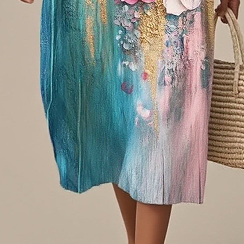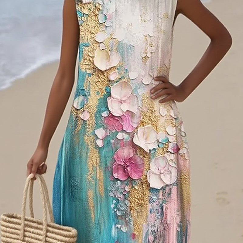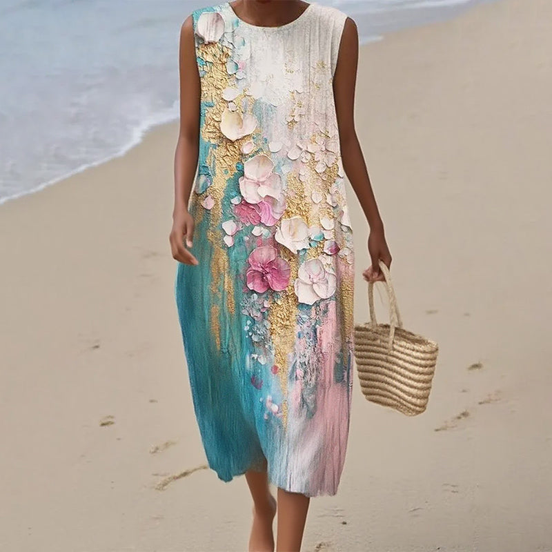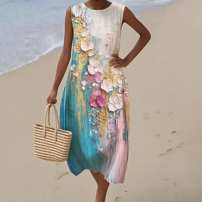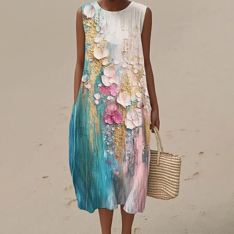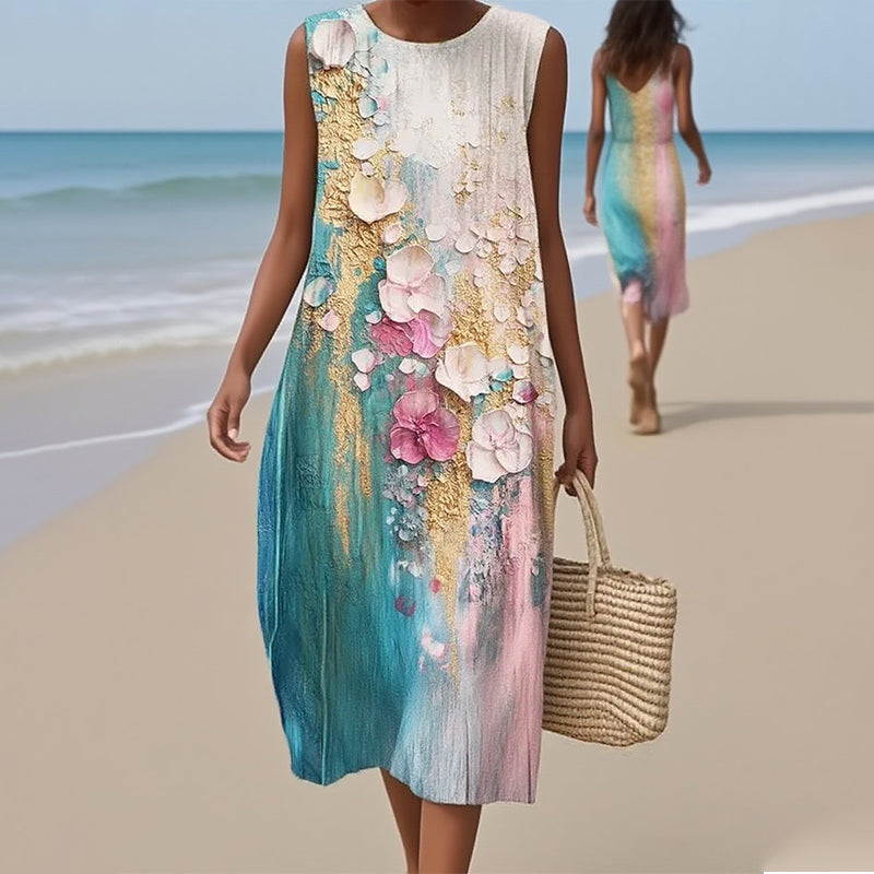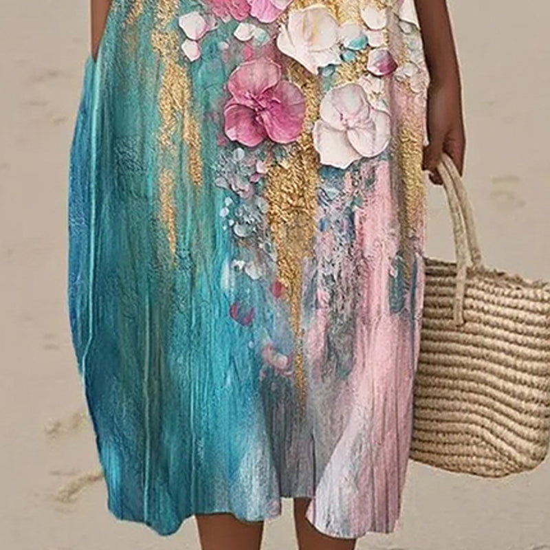 🌸 IMPRIMEU FLORAL ELEGANT – Modelul floral roz atrăgător adaugă o notă de eleganță garderobei tale casual. Perfectă atât pentru ocazii relaxate, cât și pentru evenimente mai deosebite, această rochie emană un aer feminin și atemporal.