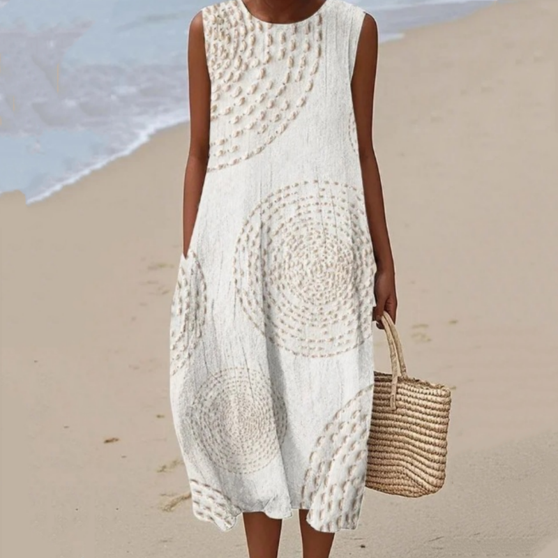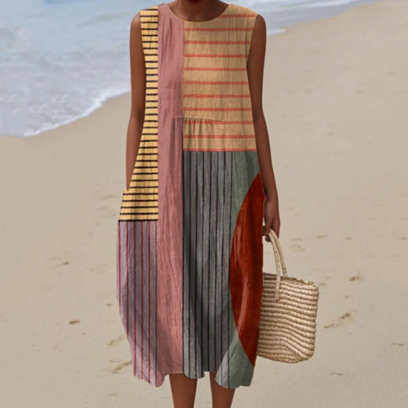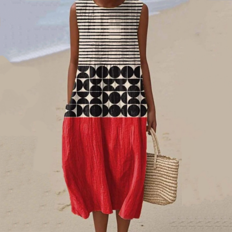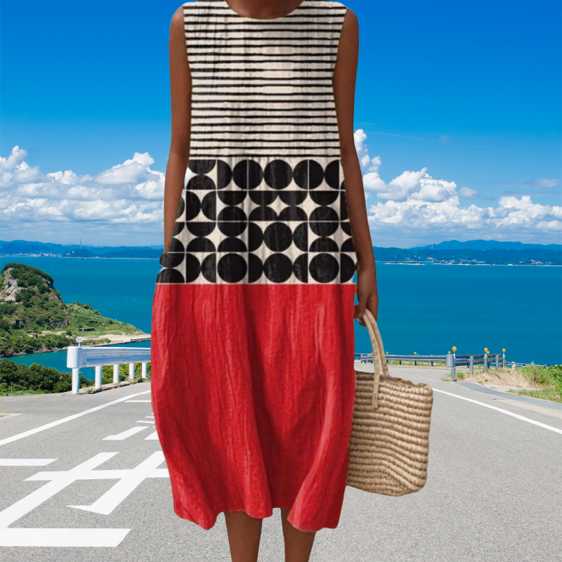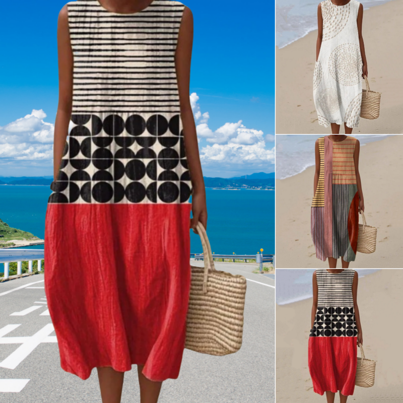 Croială elegantă fără mâneci - Această rochie este concepută fără mâneci și este perfectă pentru zilele călduroase. Rămâneți răcoroasă și elegantă în timp ce vă bucurați de libertate de mișcare, ceea ce o face perfectă pentru zilele însorite sau vacanțe.