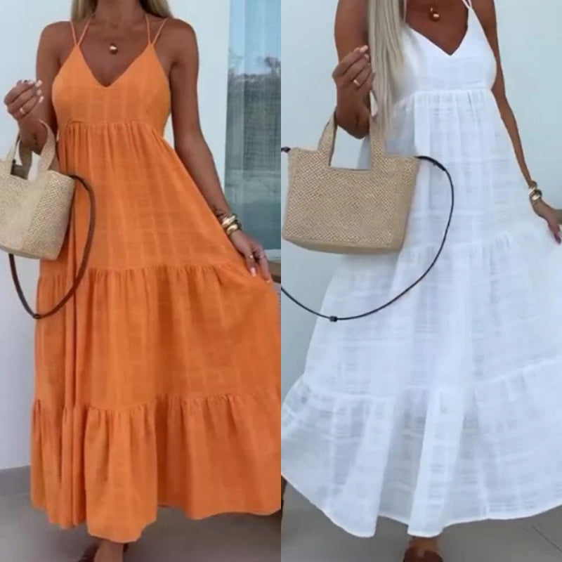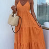 Pachet inclus: 1 * Femei Trendy V gât Spaghetti Strap Tiered Maxi rochie