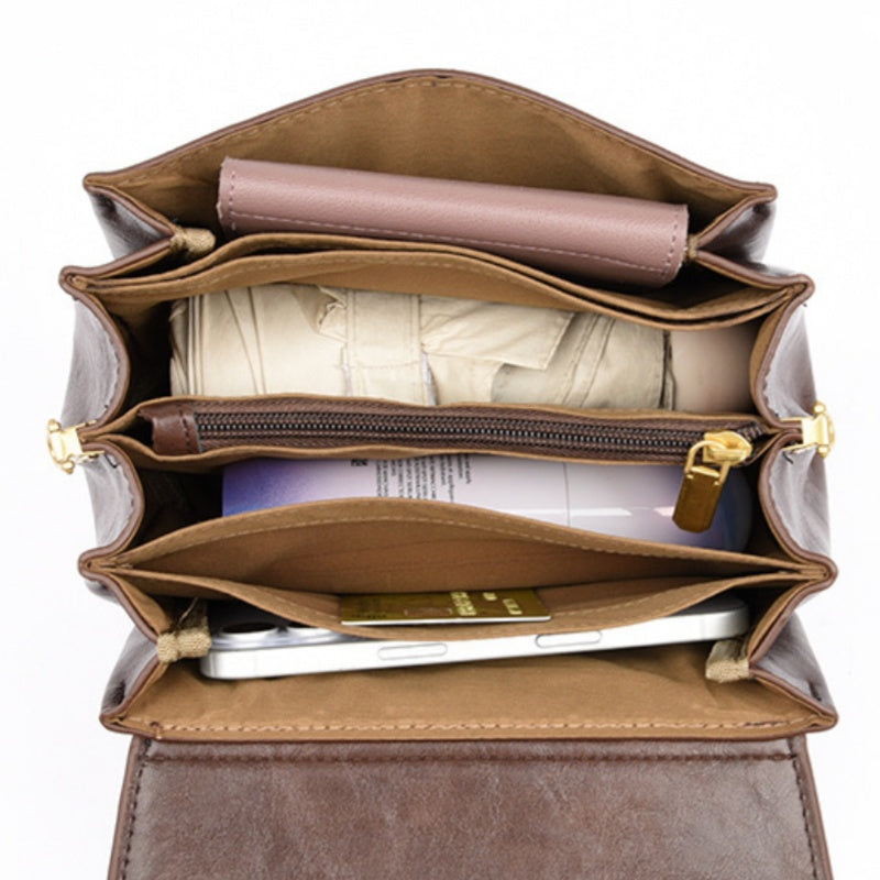 COMPARTIMENTE MULTIPLE ORGANIZATE: Designul practic în straturi include buzunare cu fermoar, un compartiment principal spațios și buzunare laterale pentru acces ușor la obiectele esențiale de zi cu zi.