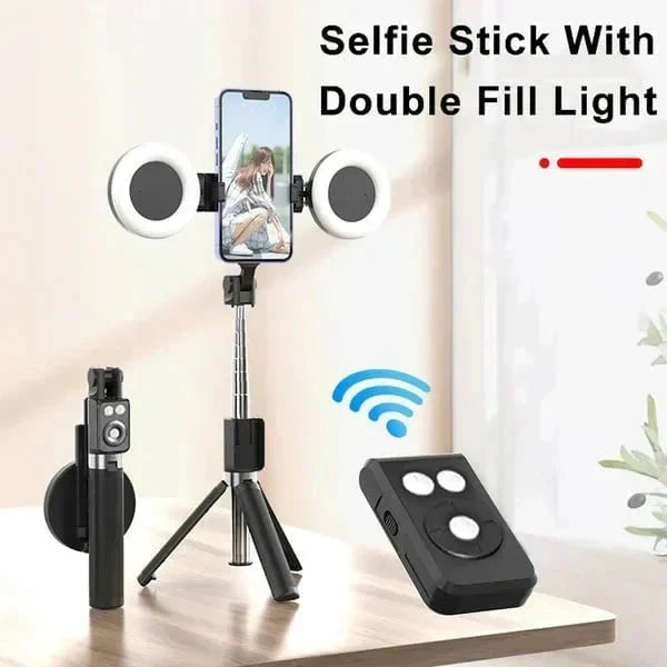 ✅ Stabilizator portabil pentru tijă de autofotografiere și lumină de umplutură detașabilă