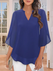 🎀O cămașă din sifon cu decolteu în V, lejeră, concepută pentru confort 🌟